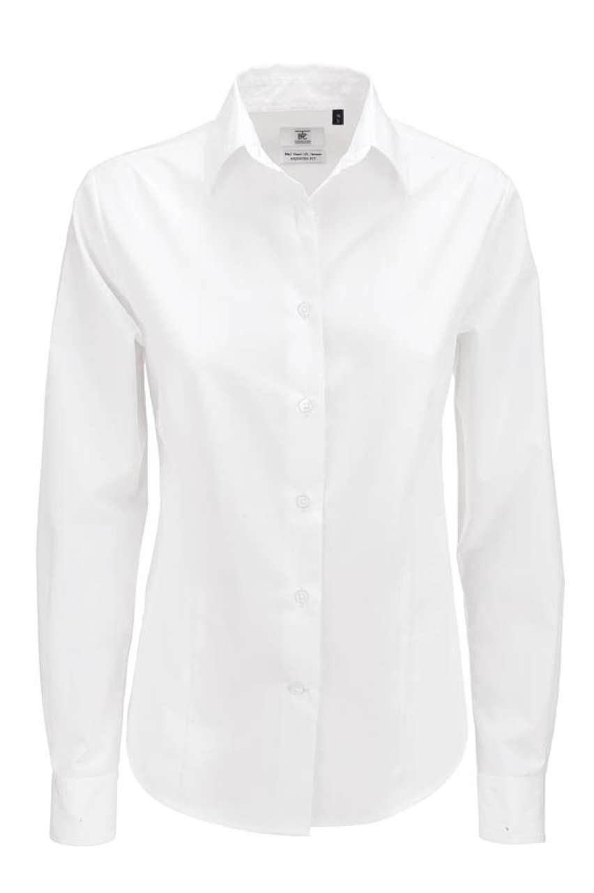 Vysoce kvalitní polycotton popelín s úpravou Easy Care je ideálním základem pro firemní oblečení a merchandising. Má jemný dámský límec a křížem prošité knoflíky s efektem perleti. Manžety lze upravit pomocí dvou knoflíků. Vhodné jako základ pro firemní značení. Objevte potenciál tohoto textilu.