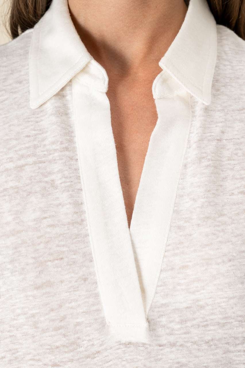 Tento lněný úpletový top je ideální pro firemní oblečení a reklamní textil. Jeho rovný střih s netopýřími rukávy a polokošilovým límcem bez knoflíků poskytuje moderní vzhled. Ozdobné boční rozparky se vlaštovčím zakončením zvyšují jeho atraktivitu. Vhodné jako základ pro firemní značení. Zvažte jeho zařazení do vaší nabídky.