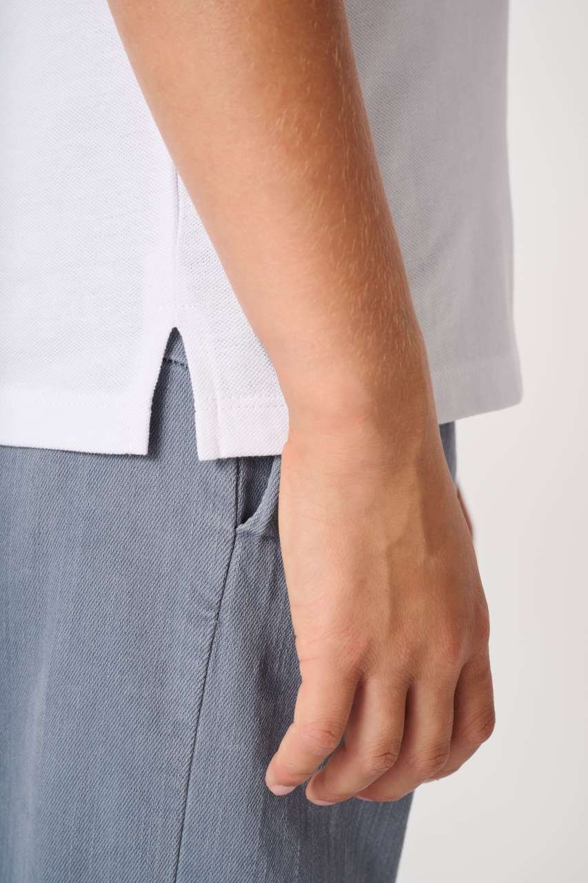 Piqué materiál v rovném střihu je ideální volbou pro firemní oblečení, reklamní textil či merchandising. Disponuje 1x1 žebrovaným límcem, léga se třemi tónově sladěnými knoflíky a postranními rozparky zajišťuje elegantní vzhled. Vhodné jako základ pro firemní značení. Zvažte jeho využití. ...