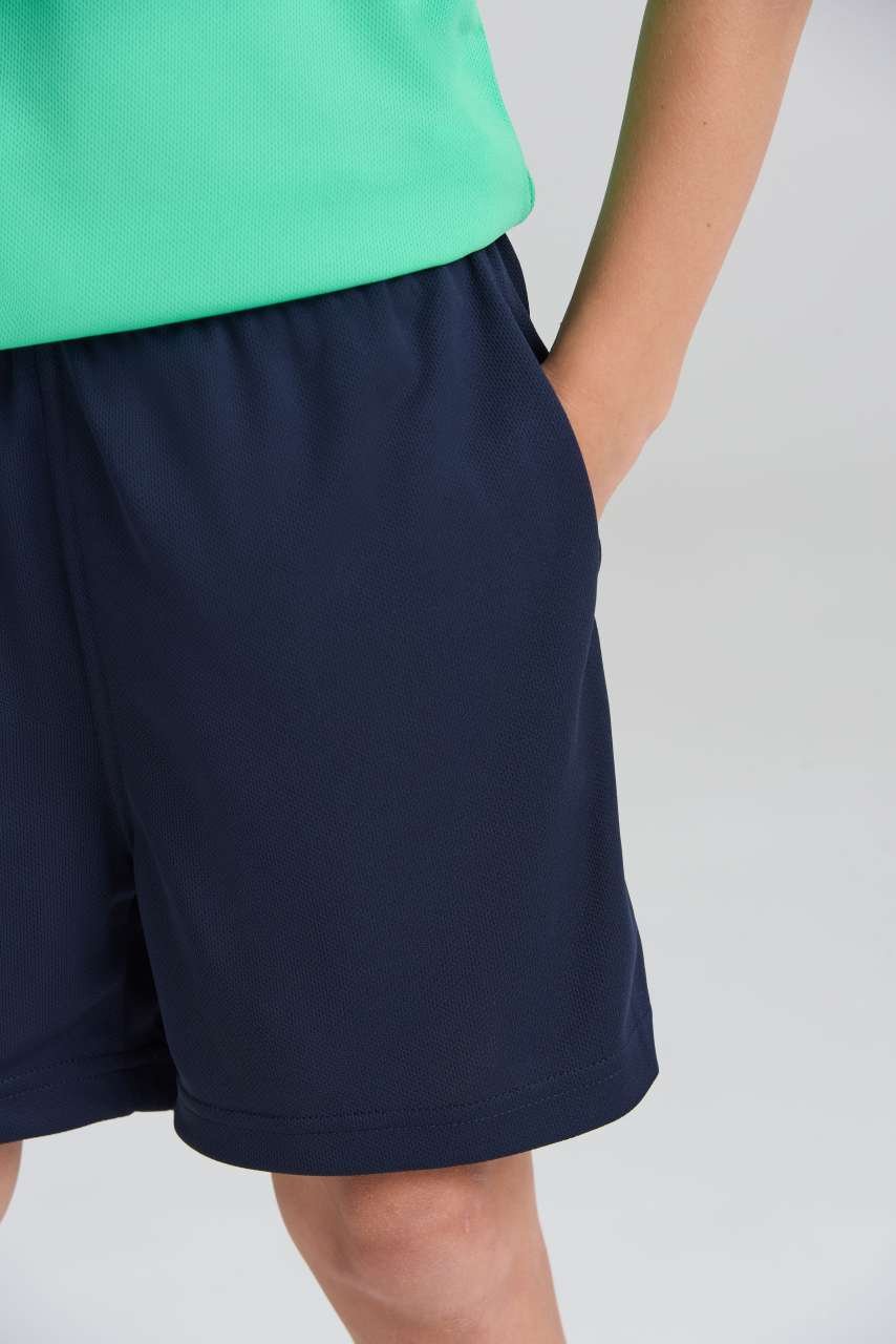 100 % polyester Volný střih Vlastní lehká texturová tkanina Neoteric TM od AWDis s přirozenou prodyšností Rychleschnoucí tkanina odvádějící vlhkost Vnitřní kapsa na klíče vnitřní síťovina Pružný pas Kapsy v bočním švu Odtrhávací etiketa UPF 30+ UV ochrana