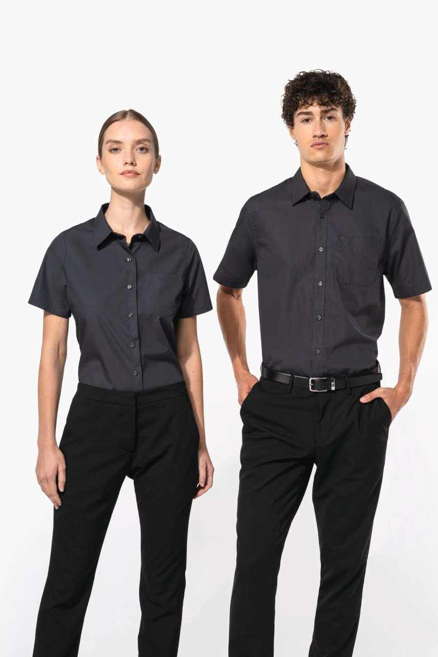Konstruovaný z bavlněného popelínu, tato košile nabízí snadnou údržbu a praktickou odnímatelnou vyztuženou límec, což ji činí ideální pro firemní oblečení či merchandising. Barevně sladěné knoflíky a zkosená levá náprsní kapsička poskytují estetický základ pro firemní značení. Tento výrobek je připraven podpořit váš firemní vzhled.