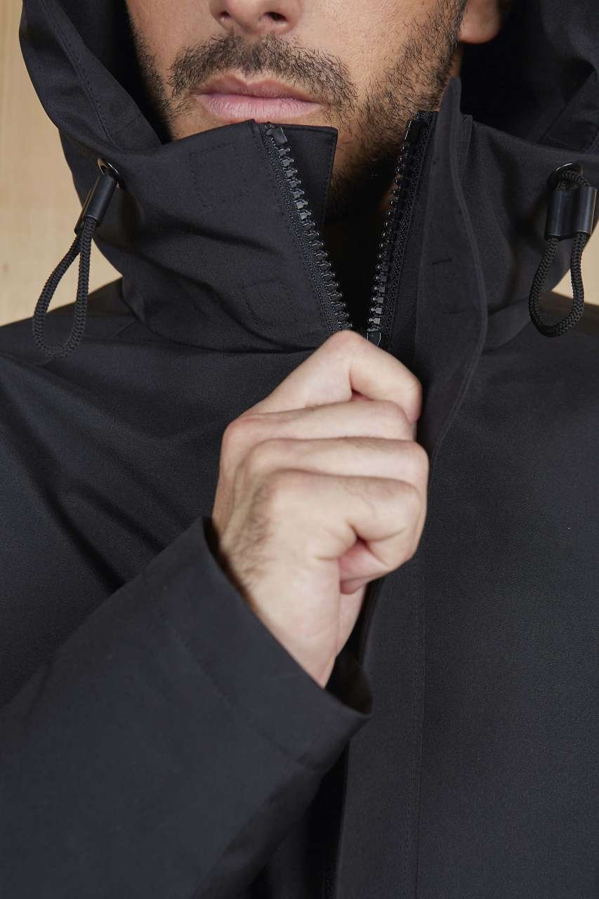 Hlavní zapínání s krycí légou, zapnutím na magnet u límce a lem pro maximální ochranu před chladem