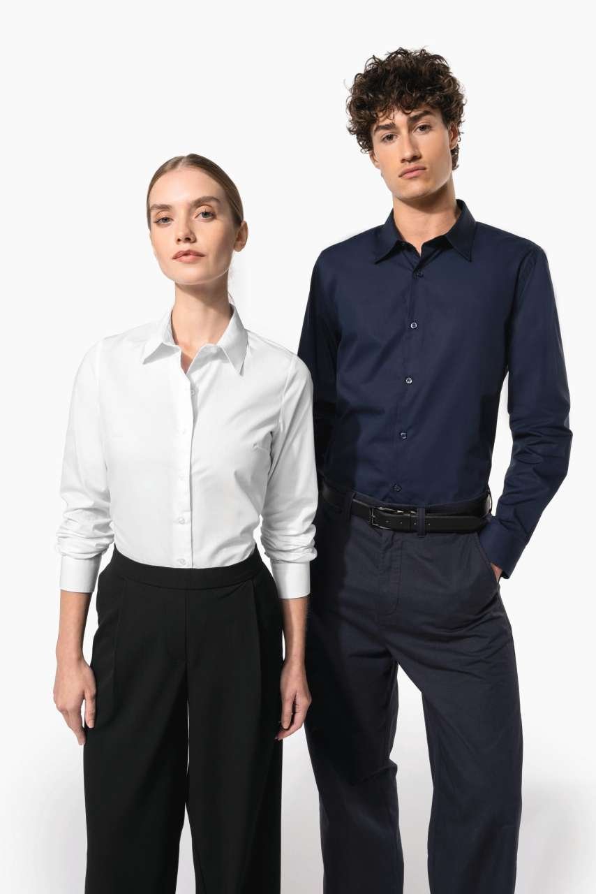 Tento bavlněný popelín je ideální pro firemní oblečení a reklamní textil. Vypasovaný styl s barevně sladěnými knoflíky a dvojitou zadní výztuhou nabízí vysokou funkčnost a estetiku. Hodí se jako základ pro firemní značení. Oživte svůj firemní vzhled s tímto produktem.