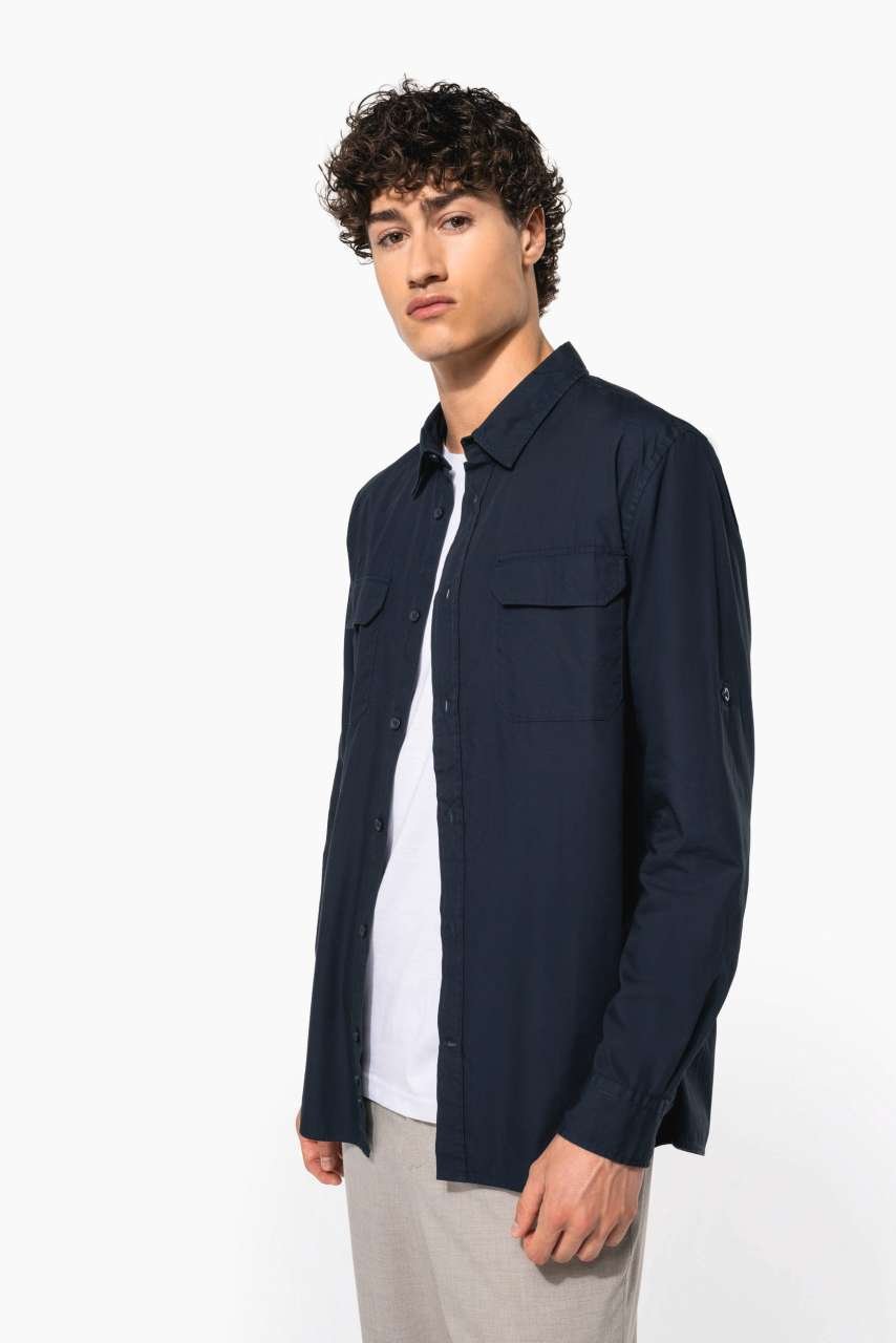 Popelínová košile z 100% bavlny s nezapínaným límcem nabízí funkční řešení pro firemní oblečení, reklamní textil nebo merchandising. Obsahuje dvě našité kapsy s klopou a nastavitelné manžety se špičatým zakončením. Ideální jako základ pro firemní značení. Navrhněte svůj branding dnes.