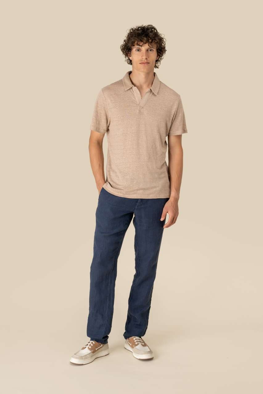 Tento lněný úpletový produkt se vyznačuje rovným střihem a límečkem s podložkou. Knoflíková léga s V-otevřením bez knoflíků z hlavního materiálu přidává elegantní prvek. Dvojité prošívání na manžetách zaručuje dlouhou životnost. Vhodné jako základ pro firemní značení. Zvažte jeho využití pro firemní oblečení či merchandising.