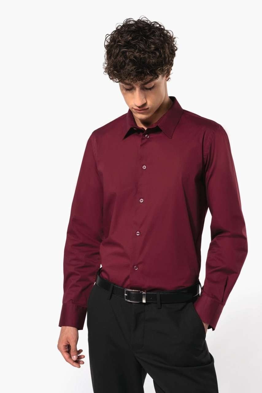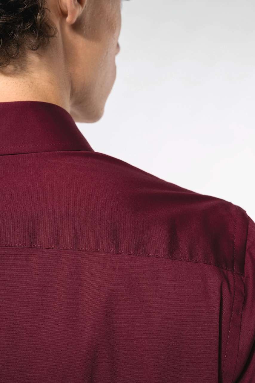 Bavlněná košile s elastanem je ideální pro firemní nošení, díky vypasovanému střihu a extra pohodlí. Vyztužený límec a dvojitá zadní výztuha dodávají formálnější vzhled. Barevně sladěné knoflíky doplňují elegantní dojem. Vhodné jako základ pro firemní značení. Objevte možnosti, které nabízí tento všestranný kousek.