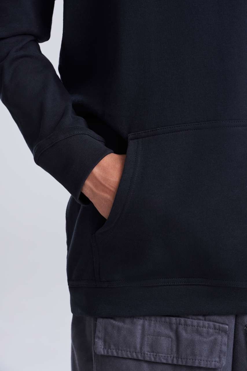 Mikina z 100% organické bavlny s vnitřním fleecem a broskvovým efektem nabízí vynikající základ pro firemní značení. Úzký žebrovaný lem zajišťuje moderní vzhled a praktičnost pro firemní oblečení či merchandising. Pozvedněte svou značku s touto kvalitní variantou.