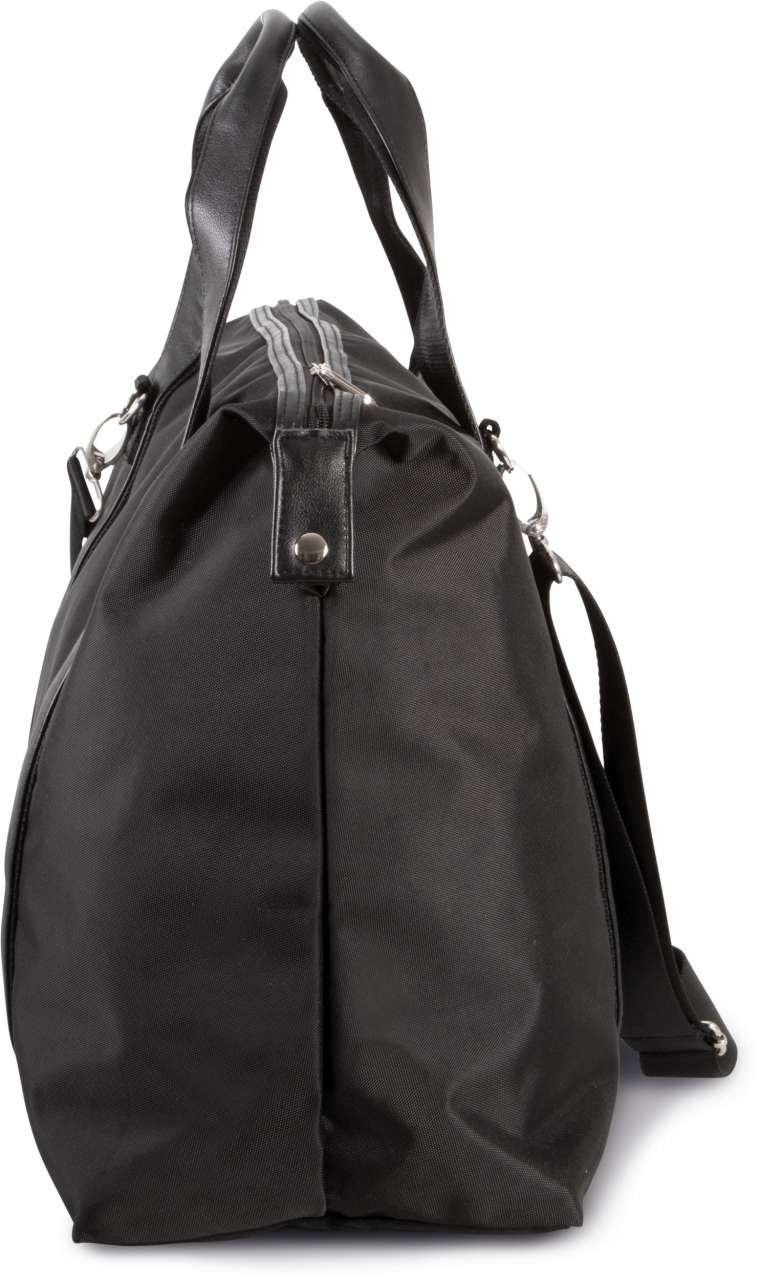 900D polyesterová velká cestovní taška s kontrastním lemováním podél horního zipu 210D polyesterová podšívka Kontrastní ucha a pásky s vyztužením Odnímatelný ramenní popruh Stabilizační nožky