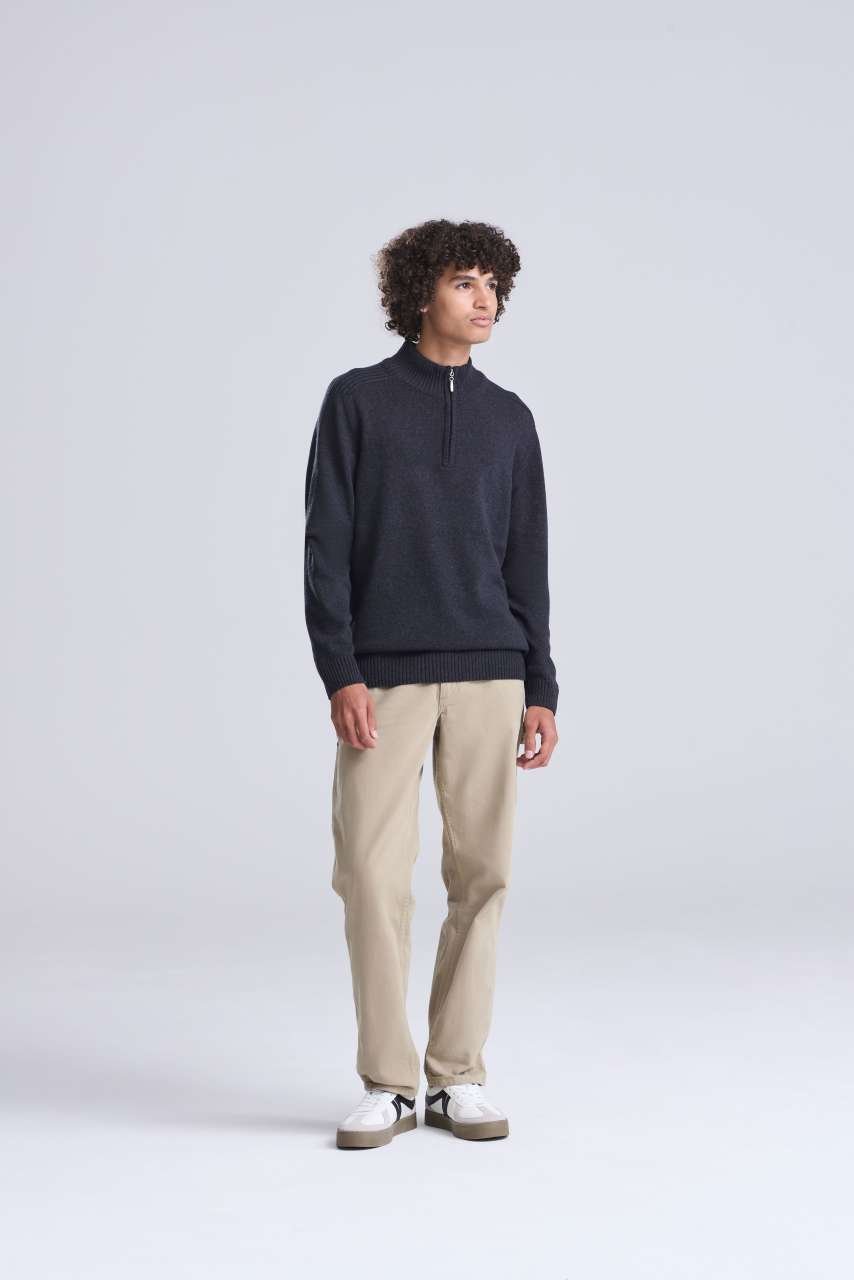70 % recyklovaná předspotřební bavlna 1/4 zip u krku Pouze boční štítek Žebrovaný límec a manžety Vsazené rukávy Standardní střih