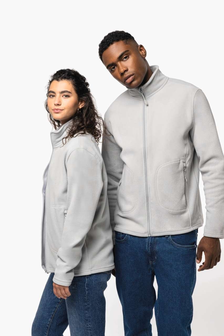 Flísová bunda z recyklovaného polyesteru je ideální pro firemní oblečení či merch. Mikro flís brání žmolkování, kapsy na zip zajišťují praktické úložiště, zatímco rovný střih poskytuje univerzální použití. Vhodné jako základ pro firemní značení. Objevte potenciál pro vaši firmu.