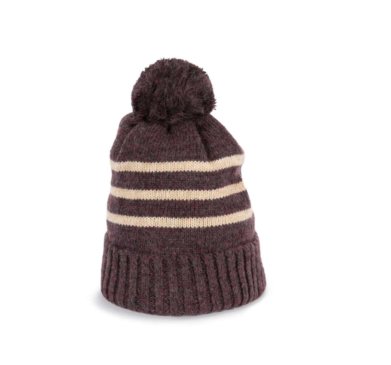 Pletená pruhovaná čepice s bambulí je vyrobena z recyklovaného polyesteru a akrylu, ideální pro firemní oblečení nebo merchandising. Díky kontrastním proužkům je vhodná jako základ pro firemní značení. Prozkoumejte její možnosti pro svůj brand.