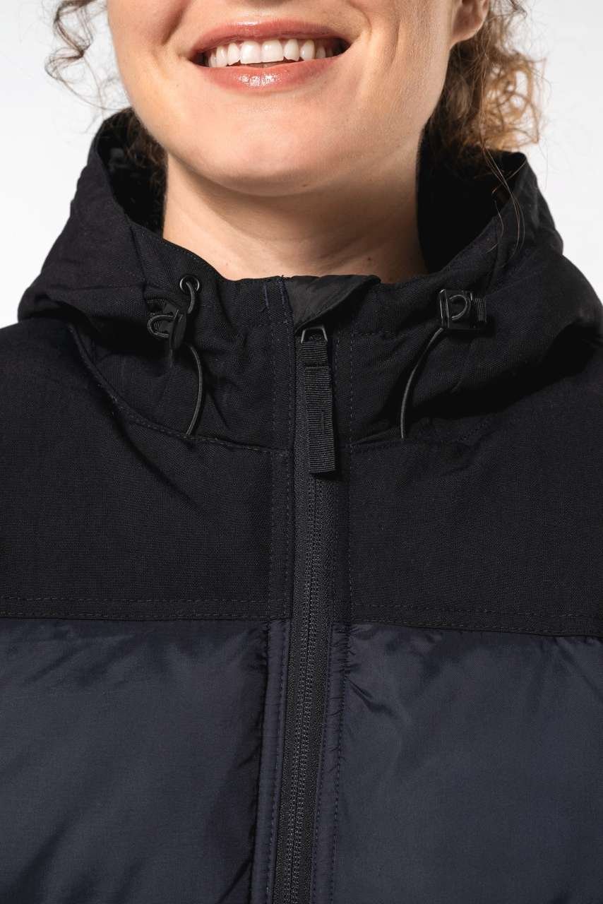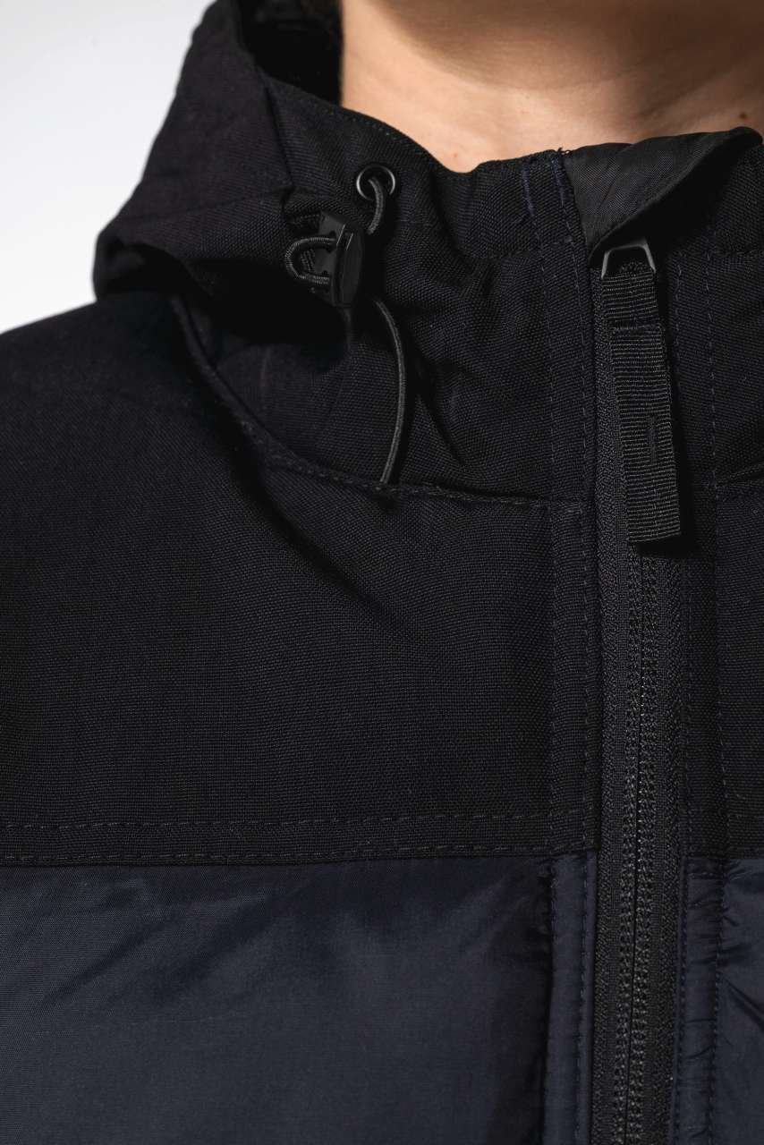 - Kapuce: 500D taslon polyamide, prošívaná a podšitá ve 3 částech se šňůrkou a zarážkou