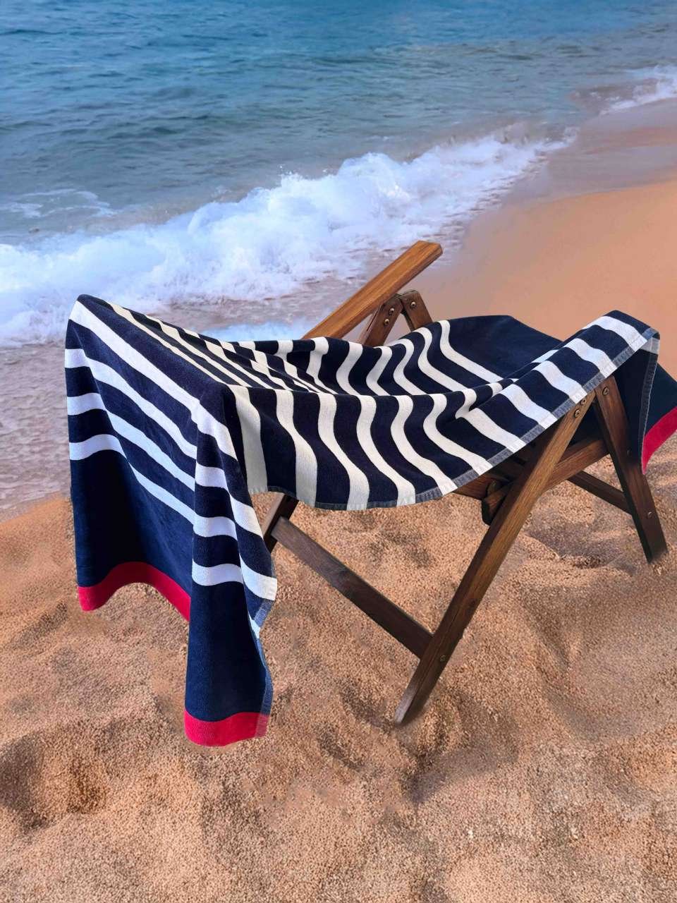 Pruhovaný plážový velurový ručník z česané bavlny nabízí ideální základ pro firemní značení. S odtrhávacím štítkem je vhodný i pro další prodej či firemní merchandising. Rozměr 90 × 180 cm zajišťuje dostatek prostoru pro značkové prvky. Pro více informací nás kontaktujte.